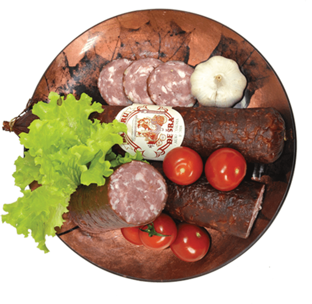 Cold Smoked, Premium quality. Composition: Pork (83%), pork fat (13%), salt, spices. The energy value, 100 g: 1877 kJ/453 kcal. Storing conditions: 0 +15 °C.